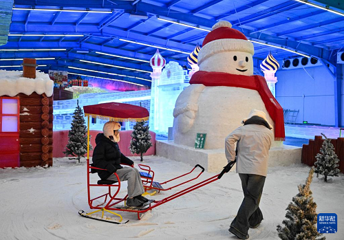 7月15日,游客在室內(nèi)冰雪世界休閑娛樂。(新華社記者 季春鵬 攝)