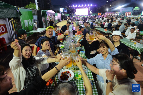 7月20日,在第35屆青島國際啤酒節(jié)嶗山會(huì)場,游客享受啤酒節(jié)夏夜狂歡。(新華社發(fā) 王海濱 攝)