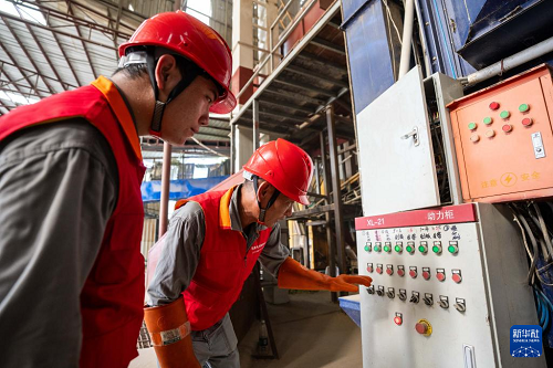 7月24日,在常德市鼎城區(qū)雙橋坪鎮(zhèn)一個水稻烘干工廠,國網(wǎng)常德供電公司電力工人在檢查烘干設備電力供應情況。(新華社記者 陳思汗 攝)
