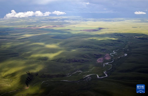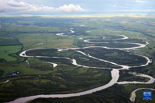 內(nèi)蒙古呼倫貝爾草原上的河流(7月29日攝,手機照片)。(新華社記者 賈立君 攝)