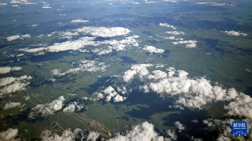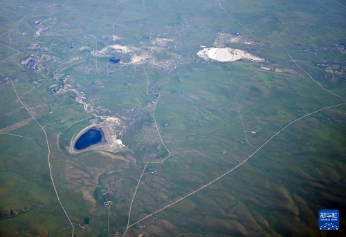 內(nèi)蒙古錫林郭勒草原上的湖泊(7月29日攝,手機照片)。(新華社記者 賈立君 攝)