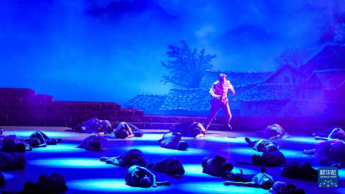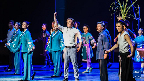 演員在貴州飯店國際會議中心表演民族歌舞劇《山河同心》(7月30日攝)。(新華社記者 陶亮 攝)