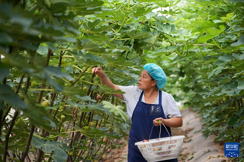 8月24日在新泰市龍廷鎮(zhèn)拍攝的進(jìn)入收獲期的無(wú)花果。(新華社記者 徐速繪 攝)