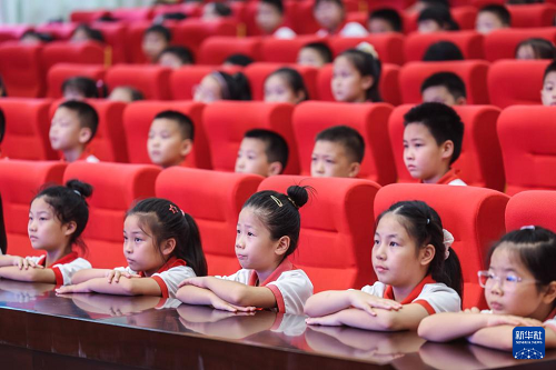 9月4日,北京師范大學南湖附屬學校的學生們在學校大講堂參加開學第一課《紅船精神》。(新華社記者 徐昱 攝)
