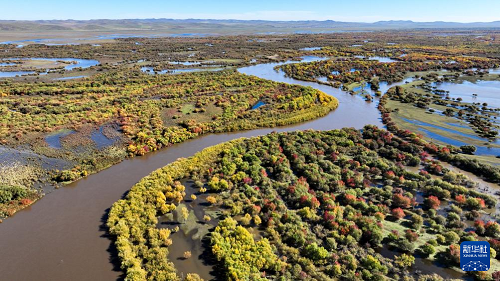 時(shí)下,內(nèi)蒙古額爾古納濕地迎來(lái)秋日盛景,多彩的灌木叢點(diǎn)綴其間,蜿蜒的河流如藍(lán)絲帶般靜靜流淌,宛若大自然打翻的調(diào)色盤(pán)。