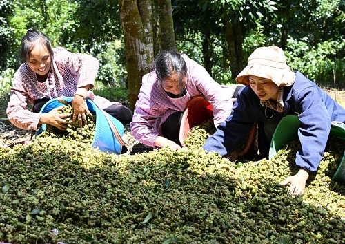 9月22日,云南省文山壯族苗族自治州馬關(guān)縣木廠鎮(zhèn)老房子村的農(nóng)民在分選剛摘下的八角。(新華社發(fā) 熊平祥 攝)