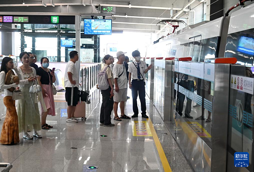 9月29日,人們在濱海快線帝封江站等候前往福州長樂國際機場的列車。(新華社記者 林善傳 攝)