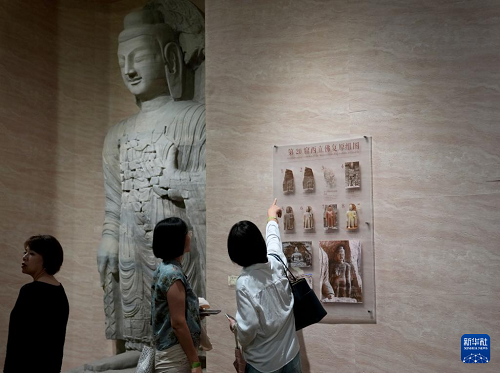10月9日在特展現(xiàn)場拍攝的云岡文物。(新華社記者 劉穎 攝)