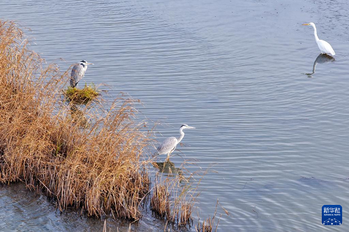 10月14日在黑龍江省同江市三江口國(guó)家濕地公園拍攝蒼鷺和白鷺。(新華社發(fā) 劉萬(wàn)平 攝)