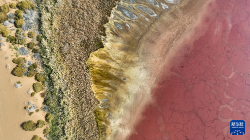 10月22日拍攝的巴丹吉林沙漠中的紅海子(無人機(jī)照片)。(新華社記者 貝赫 攝)