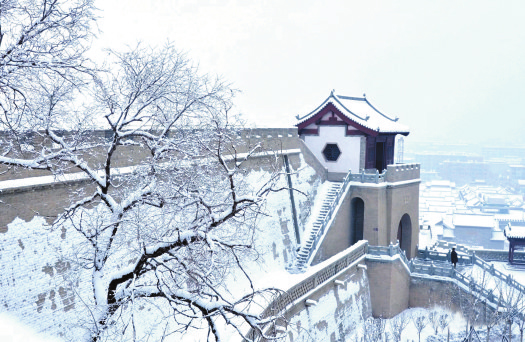 冬天一定要來忻州古城,因為這里的風光大不一樣——它寒冷、莊嚴,與遠處的系舟山連成一片,煙波朦朧;它黯淡、粗獷,與整個北方的豪邁自成一體,氣勢磅礴。它就像這雪,能給人帶去希冀。雪安,忻州古城。