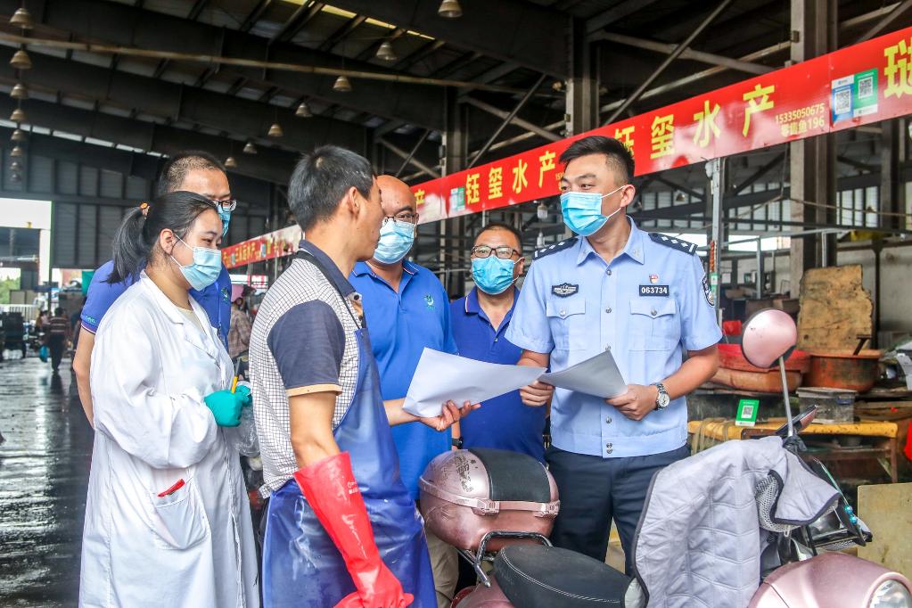 公安機關(guān)會同相關(guān)部門開展聯(lián)合檢查,民警向商戶開展法律宣傳。(公安部供圖) 全國公安機關(guān)廣辟線索來源,堅持“打源頭、端窩點、摧網(wǎng)絡、斷鏈條、追流向”,堅決斬斷非法利益鏈條,及時偵破了一批食品安全犯罪重大案件。同時,深化協(xié)作配合,加強執(zhí)法聯(lián)動,會同農(nóng)業(yè)農(nóng)村等部門聚焦重點農(nóng)產(chǎn)品,共破獲食用農(nóng)產(chǎn)品犯罪案件1800余起,抓獲犯罪嫌疑人2800余名;會同市場監(jiān)管等部門嚴厲打擊保健食品非法添加、虛假宣傳等犯罪,偵破保健食品犯罪案件2400余起,抓獲犯罪嫌疑人4800余名;深入開展農(nóng)村假冒偽劣食品專項執(zhí)法行動,受理行政部門移送涉嫌食品犯罪案件2000余起;會同海關(guān)等部門加大對銷售來源不明進口冷鏈食品犯罪打擊力度,迅速偵破一批重大案件。