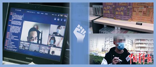左:北京市東城區(qū)人民法院線上開庭審理一起販賣合成大麻素類(“上頭”電子煙)毒品案。 北京市東城區(qū)人民法院供圖