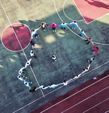 11月9日,在貴州省遵義市鳳岡縣特殊教育學(xué)校,老師帶領(lǐng)學(xué)生們?cè)诓賵鲎鲇螒?。視覺中國供圖