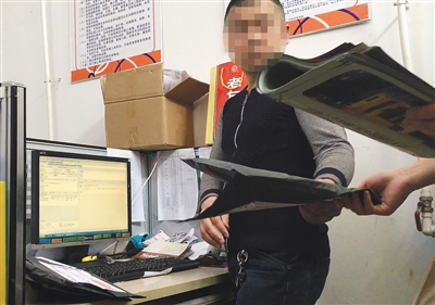 4月21日,圓通快遞太原長風(fēng)分公司。一名負(fù)責(zé)人教記者如何做空包裹,同時(shí)遞給記者一疊廣告紙,建議做空包時(shí)放入。 新京報(bào)記者 大路 攝
