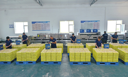 將檢驗(yàn)合格的雞蛋平穩(wěn)裝車運(yùn)往周邊超市。