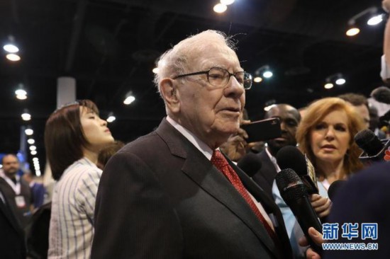 5月4日,在美國(guó)內(nèi)布拉斯加州奧馬哈市,美國(guó)伯克希爾-哈撒韋公司董事會(huì)主席沃倫·巴菲特在2019年度股東大會(huì)開(kāi)幕前回答記者提問(wèn)。新華社記者 楊承霖 攝