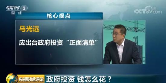 央視財經(jīng)評論員 馬光遠:《政府投資條例》有劃時代的意義,把政府投資的邊界劃得已經(jīng)非常清晰。但是,我覺得如果要更加清晰的話,還應該出臺政府投資的“正面清單”。