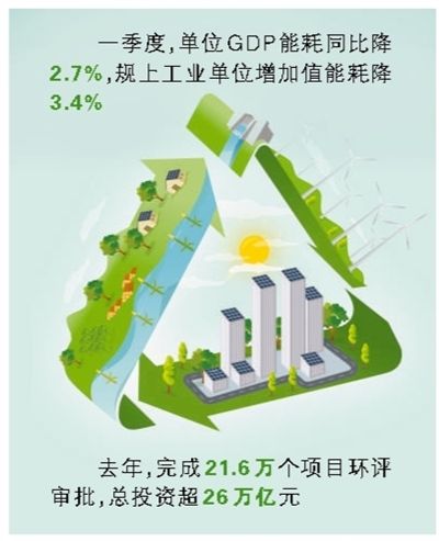 今年以來,我國經(jīng)濟運行平穩(wěn),經(jīng)濟結(jié)構(gòu)不斷優(yōu)化,產(chǎn)業(yè)的綠色化水平不斷提升。初步核算,一季度單位GDP能耗同比下降2.7%,其中規(guī)模以上工業(yè)單位增加值能耗下降3.4%。各地各部門加強監(jiān)管與優(yōu)化服務(wù)并重,促進了新舊動能轉(zhuǎn)換和經(jīng)濟高質(zhì)量發(fā)展。