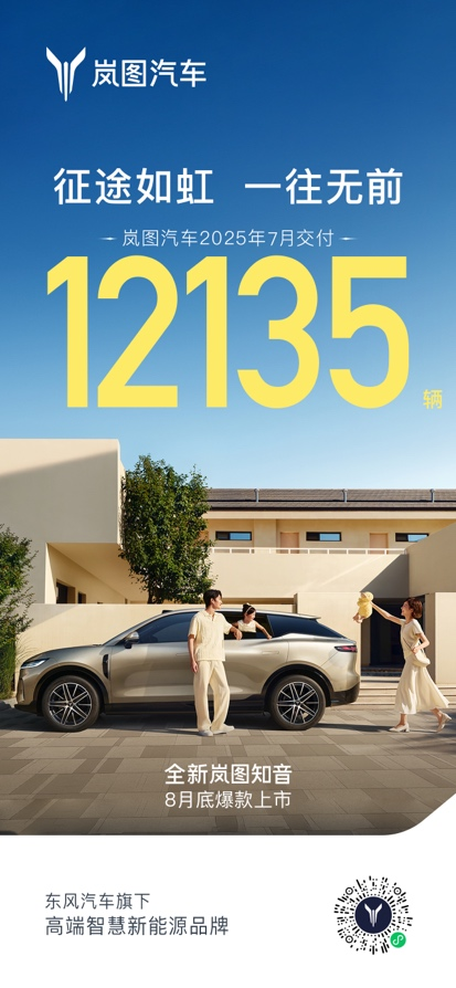 | MPV+SUV雙品類熱銷!嵐圖汽車7月交付12135輛 全新知音8月底上市 |