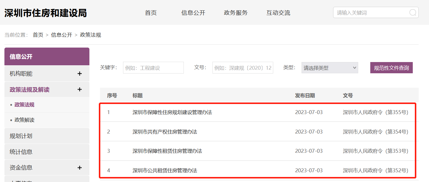 央廣網北京7月5日消息 據(jù)深圳市住房和建設局網站消息,7月3日,深圳市住建局發(fā)布《深圳市公共租賃住房管理辦法》《深圳市保障性租賃住房管理辦法》《深圳市共有產權住房管理辦法》《深圳市保障性住房規(guī)劃建設管理辦法》,具體來看,上述四項管理辦法,分別對公共租賃住房、共有產權住房、保障性租賃住房等三類住房的保障對象、申請條件、供應分配方式、租售價格標準、用地保障、建設籌集主體和渠道、建設標準、監(jiān)督管理等進行了規(guī)范。四項管理辦法將于8月1日正式實施。