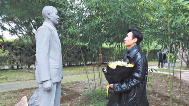 于和偉代表主創(chuàng)團(tuán)隊(duì)向吳石烈士敬獻(xiàn)鮮花