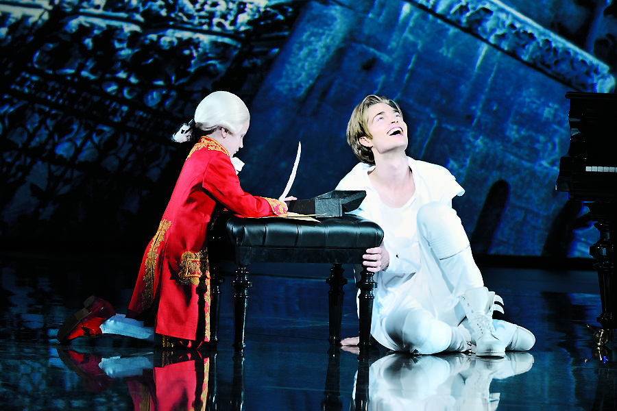 坊間近年來出了很多寫名人的戲,不少當代英雄和歷史人物你方唱罷我登場。大家感慨真人難寫,常會顧此失彼,不容易讓熟悉其原型的各方面人士都滿意——至少認可其真實性。在這個語境中看《莫扎特!》,編劇兼作詞米歇爾·昆策筆下的辯證主題及其呈現方式的巧思實在令人嘆為觀止。我們看到了多少個莫扎特?除了瓷娃娃阿瑪德、少年和成年莫扎特,還有老莫扎特鏡像中的不孝子、總主教鏡像中的刺頭員工、男爵夫人眼里恨鐵不成鋼的年輕人、妻子眼里的愛人、岳母囊中的獵物、賭友最愛的冤大頭……所有這一切,都被昆策張弛有致地編織到懸念迭起還有那么多歌的劇情中。