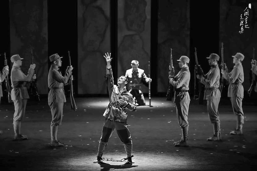 該劇運(yùn)用了大量真實(shí)的歷史影像和聲音資料,音樂(lè)亦磅礴大氣、高潮迭起,增強(qiáng)了舞臺(tái)感染力。美中不足的是,或許是由于時(shí)長(zhǎng)限制,刪減后的部分劇情銜接稍顯突兀,例如瞿霞為何入獄八年,楊立青為何與瞿恩的遺孀林娥結(jié)婚,內(nèi)容交代顯得急促。在重大歷史事件背景的介紹方面,運(yùn)用文字投屏固然能夠提高敘事效率,但也需要稍作節(jié)制。但整體看,該劇還是展現(xiàn)出了對(duì)藝術(shù)審美的不懈追求,用心用情地譜寫(xiě)了一曲理想與信念之歌。