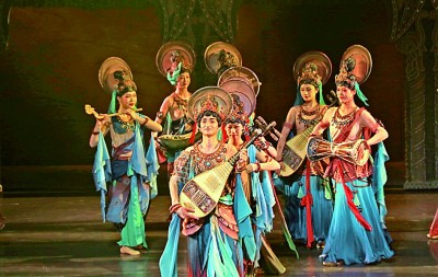 大型洞窟式沉浸體驗劇《樂動敦煌》在甘肅敦煌首演。新華社發(fā)