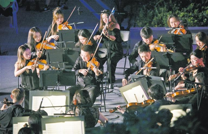 8月22日,昆明池畔,隨著歌曲《一生所愛(ài)》的旋律響起,由西安交響樂(lè)團(tuán)、西安交響樂(lè)團(tuán)合唱團(tuán)帶來(lái)的“因?yàn)閻?ài)你——七夕主題交響樂(lè)之夜”活動(dòng)拉開(kāi)帷幕。七夕湖上波光粼粼,鵲橋凌波含情脈脈。在修建之初就被融入愛(ài)情主題的昆明池·七夕公園,在極具浪漫色彩的古韻與美景中,通過(guò)交響樂(lè)與經(jīng)典電影畫(huà)面的視聽(tīng)結(jié)合形式,線上線下同步向觀眾展現(xiàn)亙古不變的美好愛(ài)情和永恒浪漫。