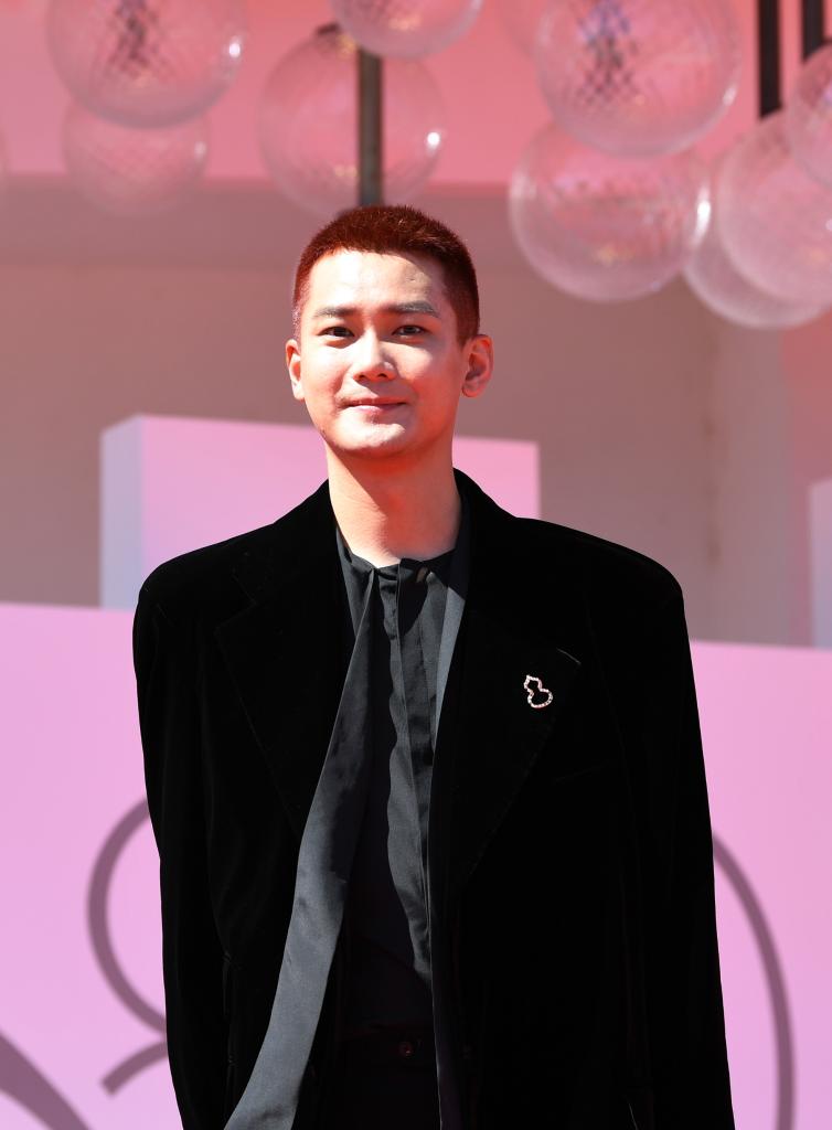 9月6日,在意大利威尼斯,電影《雪豹》演員熊梓淇亮相首映式紅毯。新華社記者 金馬夢妮 攝