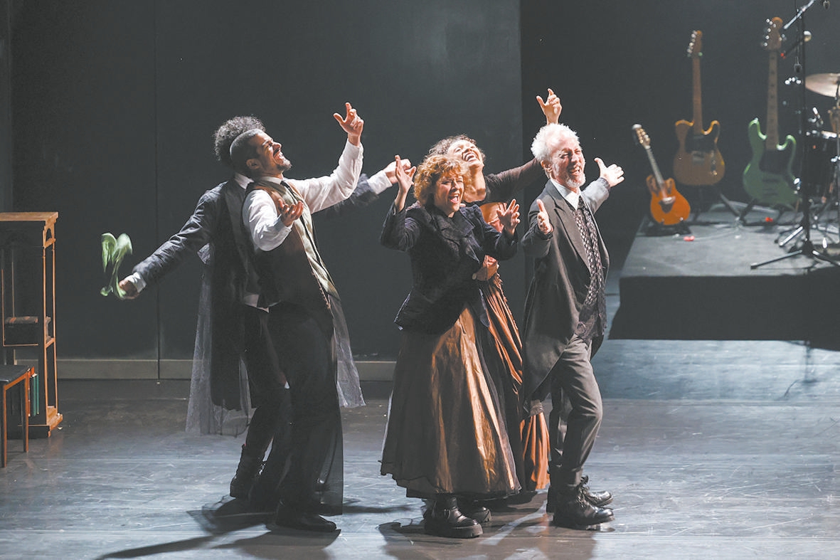 不過觀眾欣賞馬瑞爾斯的創(chuàng)新改編時(shí),卻是十分享受?;蛟S因?yàn)轳R瑞爾斯將小說中極具視聽感的部分,通過幕景、樂器、復(fù)古道具以及演員精湛的表演完美再創(chuàng),讓文學(xué)與戲劇碰撞出美妙的火花,并將小說中兼有含蓄與諷刺的筆觸,在舞臺上還原。