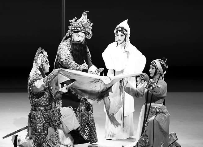 “劇本乃一劇之本,《顏真卿》的劇本基礎(chǔ)非常好,不僅有強(qiáng)烈的矛盾沖突,故事情節(jié)也非常抓人,劇情從一開始就進(jìn)入了緊張狀態(tài),之后的設(shè)計(jì)又環(huán)環(huán)相扣?!敝旖B玉特別提及,新戲創(chuàng)作有時(shí)會(huì)“把唱詞寫得別別扭扭”,《顏真卿》有難得的詩(shī)意,而且接地氣,格式、韻腳都很契合京劇音樂(lè)韻律,“《顏真卿》的聲腔強(qiáng)調(diào)一個(gè)‘韻味’,有韻味才能吸引人?!敝旖B玉同時(shí)注重結(jié)合作品的時(shí)間背景,融入管子音樂(lè)等標(biāo)志性的西北地域特色,在彰顯“京朝派”醇厚底蘊(yùn)的基礎(chǔ)上,為全劇注入一抹熾烈濃艷的唐時(shí)氣韻。