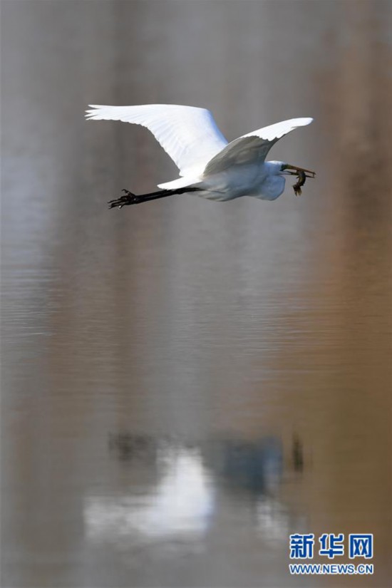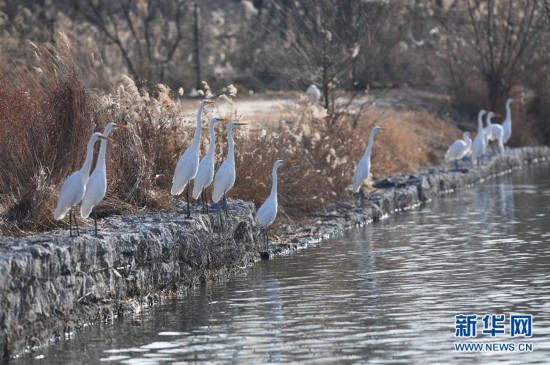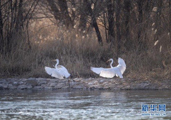 12月5日,白鷺在太原市汾河濕地公園內(nèi)嬉戲。 冬日,位于山西太原的汾河濕地公園迎來(lái)大批到此棲息越冬的白鷺。 新華社記者 楊晨光 攝