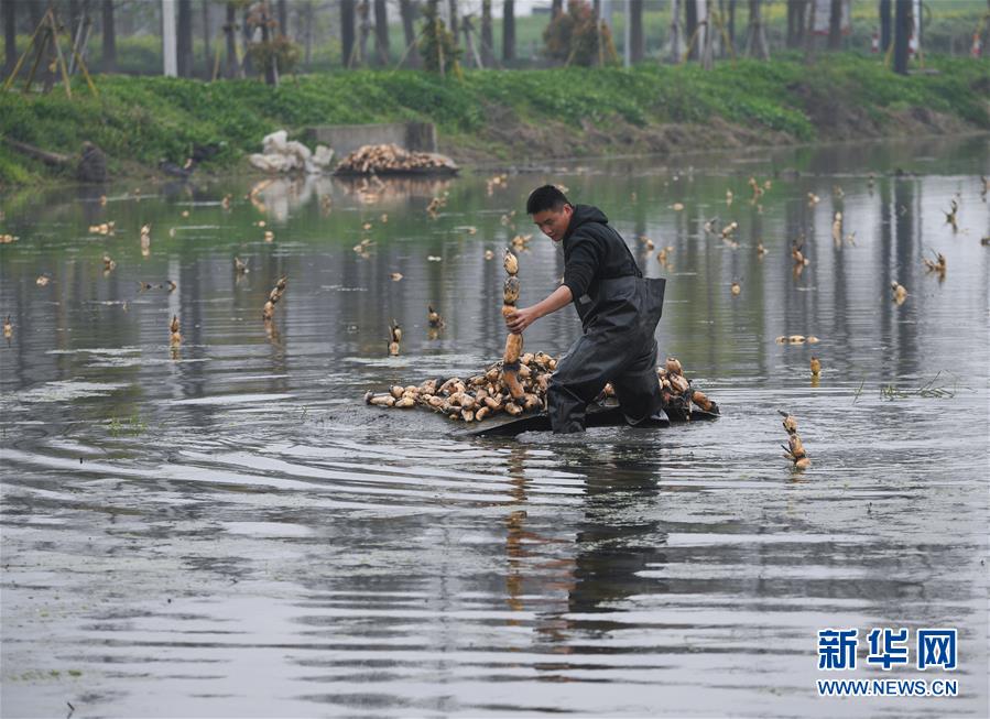 4月1日,廟兜村村民在村邊的池塘里種植蓮藕。這5畝池塘原本是魚(yú)蝦養(yǎng)殖塘,今年開(kāi)始種植蓮藕作為夏季荷花觀賞區(qū),這也是當(dāng)?shù)孛利愢l(xiāng)村環(huán)境整體提升的改造項(xiàng)目之一。 近年來(lái),浙江省湖州市織里鎮(zhèn)廟兜村積極推進(jìn)美麗鄉(xiāng)村建設(shè),通過(guò)整治鄉(xiāng)村道路及違章建筑,美化村容村貌,提升水環(huán)境質(zhì)量,打造村級(jí)景觀帶等多項(xiàng)措施,進(jìn)一步提升美麗鄉(xiāng)村的建設(shè)成效。 新華社記者徐昱攝