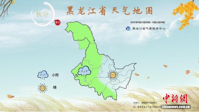 2025年“秋分首日”黑龍江省天氣地圖(2025年9月23日8時至24日8時)。 黑龍江省氣象局供圖