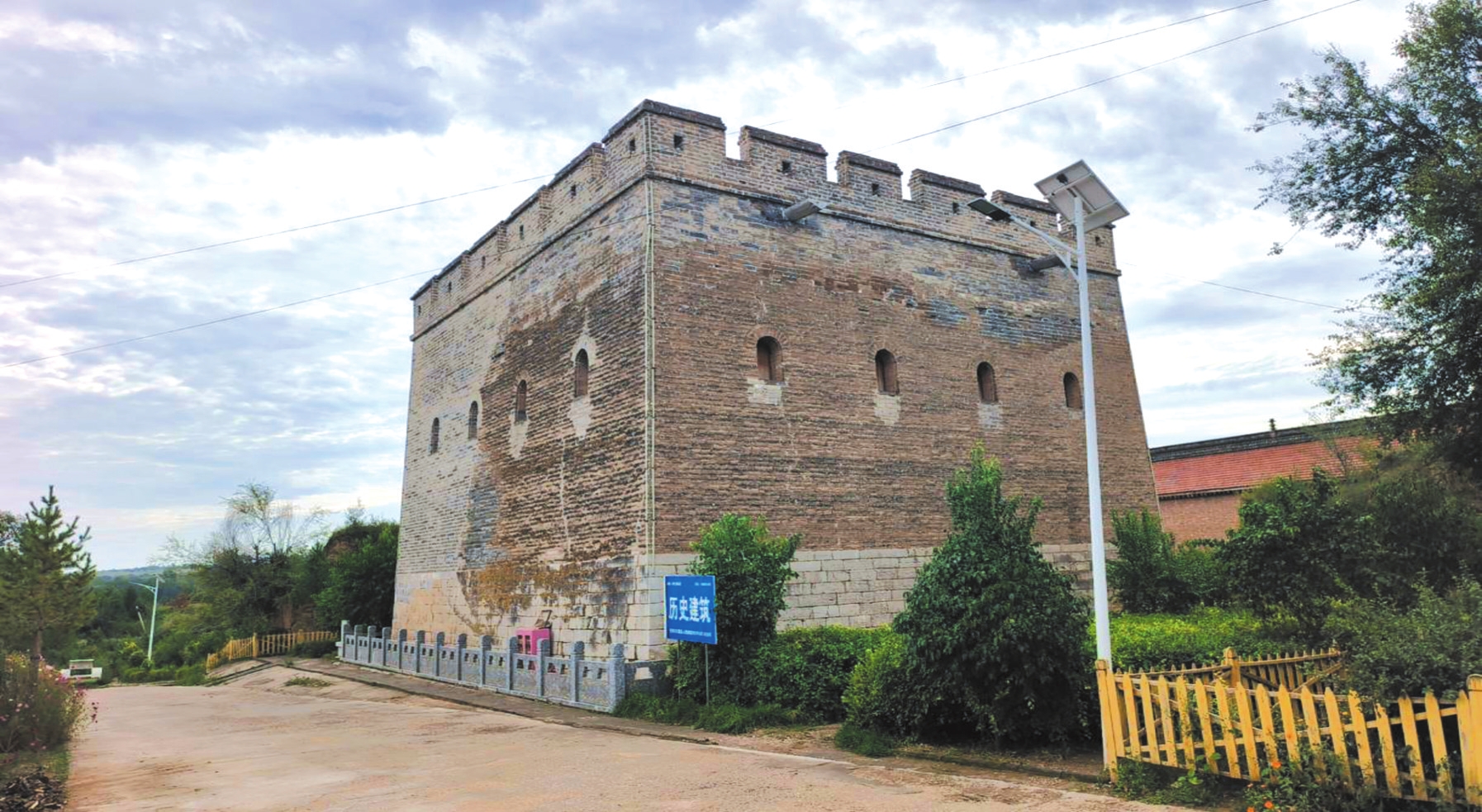 郭家河靖邊樓位于五寨縣東秀莊鄉(xiāng)郭家河村。據(jù)縣志考證,此樓建于明代萬歷年間,坐北朝南,平面呈正方形,邊長約16米,占地面積約259平方米。通高11米,頂部設(shè)垛口,內(nèi)部形制為環(huán)形,磚砌拱券,四面布箭窗。靖邊樓南面正中為拱券石門,門額鑲嵌石匾,四周雕刻云勾紋,上刻楷書“靖邊樓”,下刻落款“山西路管轄太原……岢嵐營守部指揮趙恭”等字樣。靖邊樓堡墻長約1600米,基寬3至6米,殘高5至7米,夯層厚度10至15厘米。靖邊樓作為明代保境安民的邊塞防御體系,對明代中期邊防軍事部署研究具有重要作用,具有較高的歷史價值、藝術(shù)價值和科學(xué)價值。