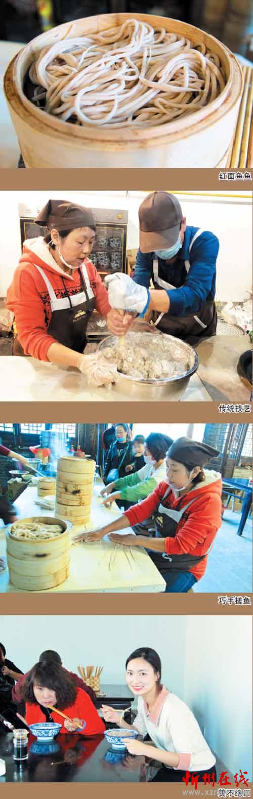 這家店的女主人叫康秀蘭,今年51歲,忻府區(qū)豆羅鎮(zhèn)韓溝村人。秀蘭從小勤快,幫助母親洗鍋?zhàn)鲲?,學(xué)搓魚(yú)魚(yú)。18歲時(shí)便遠(yuǎn)近聞名,掌握了搓魚(yú)魚(yú)的好手藝。在今年忻州古城招商比賽入圍的6家店鋪中,秀蘭的小店脫穎而出,奪得第一名,拿到了開(kāi)門(mén)店的資格。眼下夫妻二人經(jīng)營(yíng)著兩間大的門(mén)臉兒,小籠屜蒸魚(yú)魚(yú),臊子有鮮肉蘑菇、西紅柿和老酸菜湯,食客們可根據(jù)自己的喜好選擇。他們兩口子既當(dāng)老板又是廚師。在食客多時(shí)臨時(shí)雇幾個(gè)幫工,小生意做得風(fēng)生水起??敌闾m告訴筆者,自開(kāi)張以來(lái)食客不斷增加,國(guó)慶節(jié)假期期間一天的最高銷(xiāo)售紀(jì)錄是賣(mài)出200多籠紅面魚(yú)魚(yú)。
