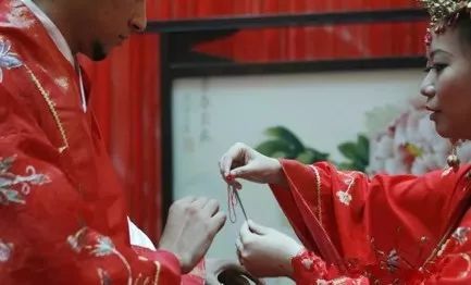 婚禮喝交杯酒也要用同心結(jié),亦是結(jié)發(fā)同心髻之延伸,《東京夢華錄》:“用兩盞以彩結(jié)連之,互飲一盞,謂之交杯酒。飲訖,擲盞并花冠于床下,盞一仰一合,欲云大吉”。即用同心結(jié)拴在兩個酒杯上,交臂而飲。酒喝完后,與花冠擲于新床下,如果酒杯一個仰,一個覆,就是大吉的征兆。同心結(jié)還用于人們的閨閣裝飾,表達(dá)對白頭偕老、永結(jié)同心的愛情生活的向往和追求。