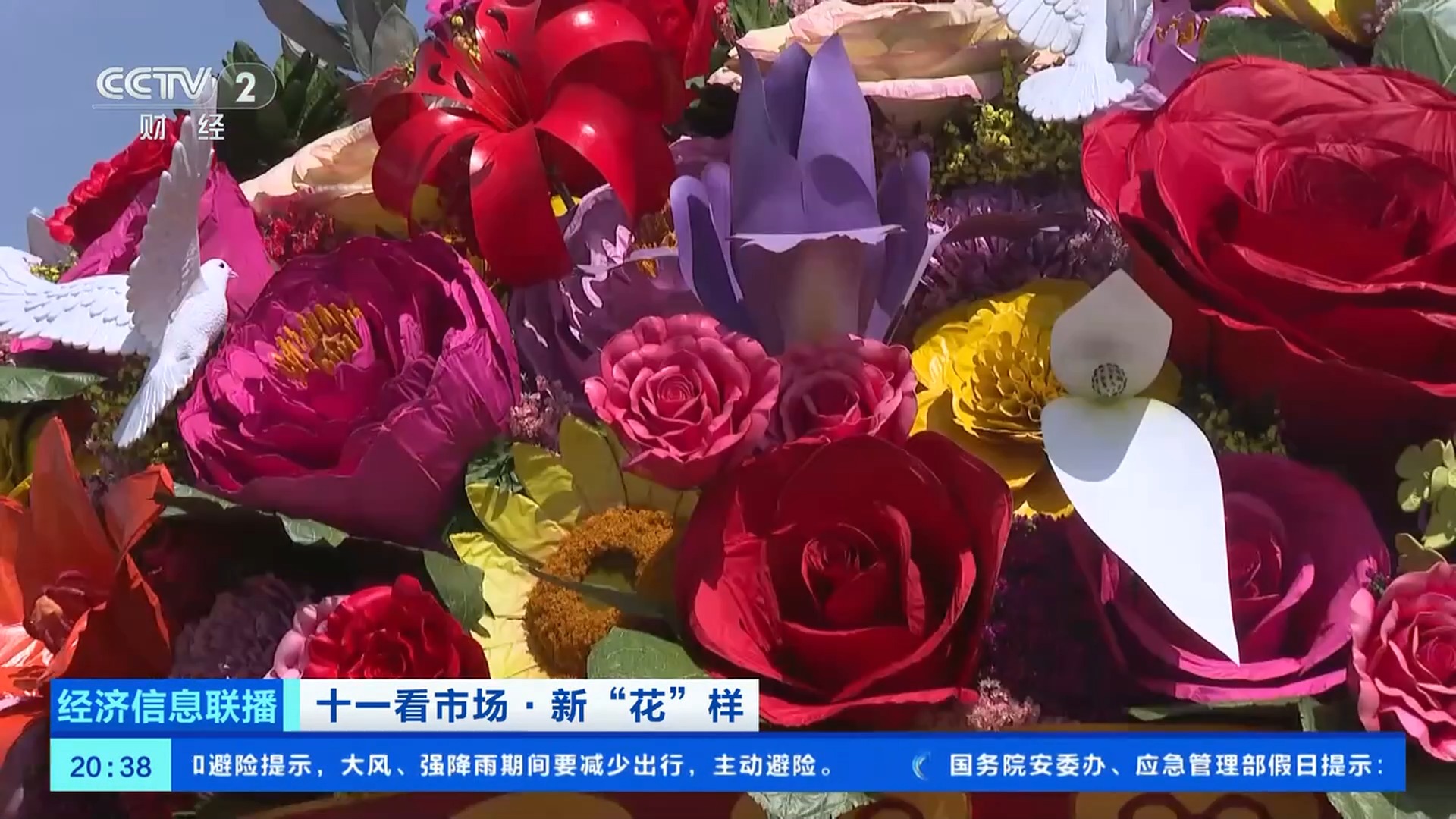 天安門花壇總工程師 張先哲:在天安門廣場我們要抗12級風(fēng),這些大型的花朵要在大風(fēng)中巋然不動,依然要保持它良好的面貌,所以我們用的大型仿真花比較多。今年,這些花朵的大小和色彩做得更加精致自如,比如鳶尾花花瓣用了彩繪,讓它的細節(jié)、紋理、顏色更加逼真。大花籃里的山丹丹、鴿子花,用的雕塑工藝,是用一些不銹鋼板敲制出來的。