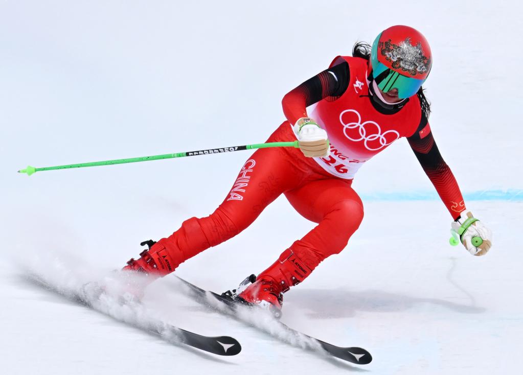 2月15日,中國選手孔凡影在北京冬奧會高山滑雪女子滑降項目比賽中。新華社記者張晨霖攝
