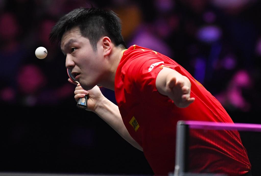 4月12日,樊振東在比賽中發(fā)球。新華社記者 郝源 攝 男單八分之一決賽,梁靖崑、樊振東均是在先輸一局后逆轉(zhuǎn)取勝。面對(duì)韓國(guó)隊(duì)選手李尚洙,世界排名第一的樊振東首局在9:7領(lǐng)先的情況下被對(duì)手連拿4分,以9:11輸?shù)羰拙?,但隨后三局他以11:4、11:6和11:5勝出。對(duì)陣瑞典名將法爾克,梁靖崑也是以9:11丟掉首局,但后面的比賽他沒(méi)有再給對(duì)手機(jī)會(huì),以11:7、11:8和11:6逆轉(zhuǎn)取勝。 另外兩位國(guó)乒男單選手也順利晉級(jí),林詩(shī)棟以3:0戰(zhàn)勝德國(guó)選手邱黨,王楚欽以3:0擊敗斯洛文尼亞選手達(dá)科·約奇克。