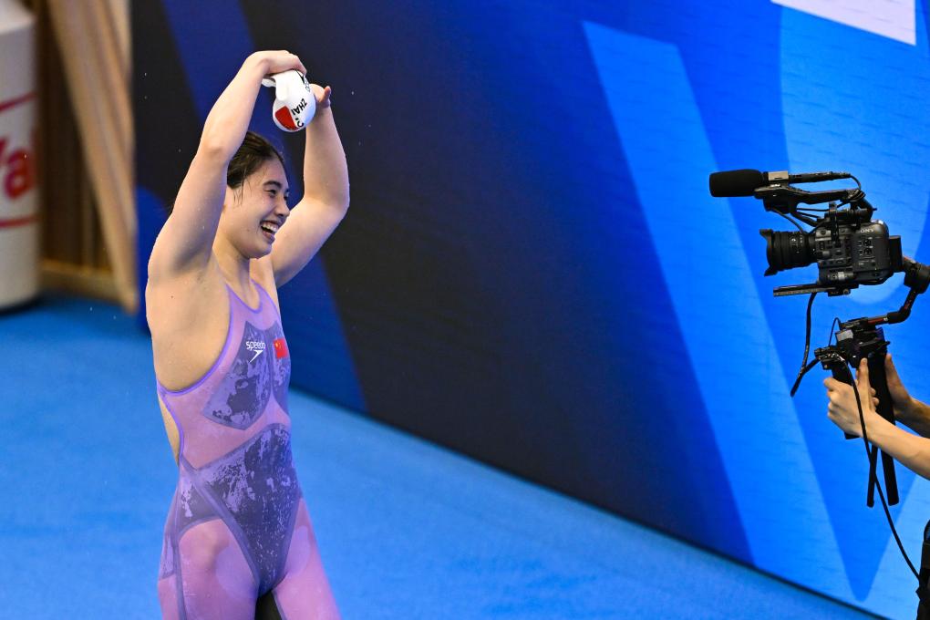 覃海洋摘金短短幾分鐘后,中國蝶泳名將張雨霏在女子100米蝶泳決賽中以56秒12的成績獲得冠軍,如愿以償?shù)財(cái)[脫了世錦賽“銅牌專業(yè)戶”的稱呼,奪得個(gè)人首枚世錦賽金牌。雖然在東京奧運(yùn)會(huì)拿到200米蝶泳冠軍,但張雨霏在世錦賽上一直不太順利,在2022年布達(dá)佩斯世錦賽女子蝶泳從50米到200米三個(gè)距離的比賽中全部獲得銅牌。