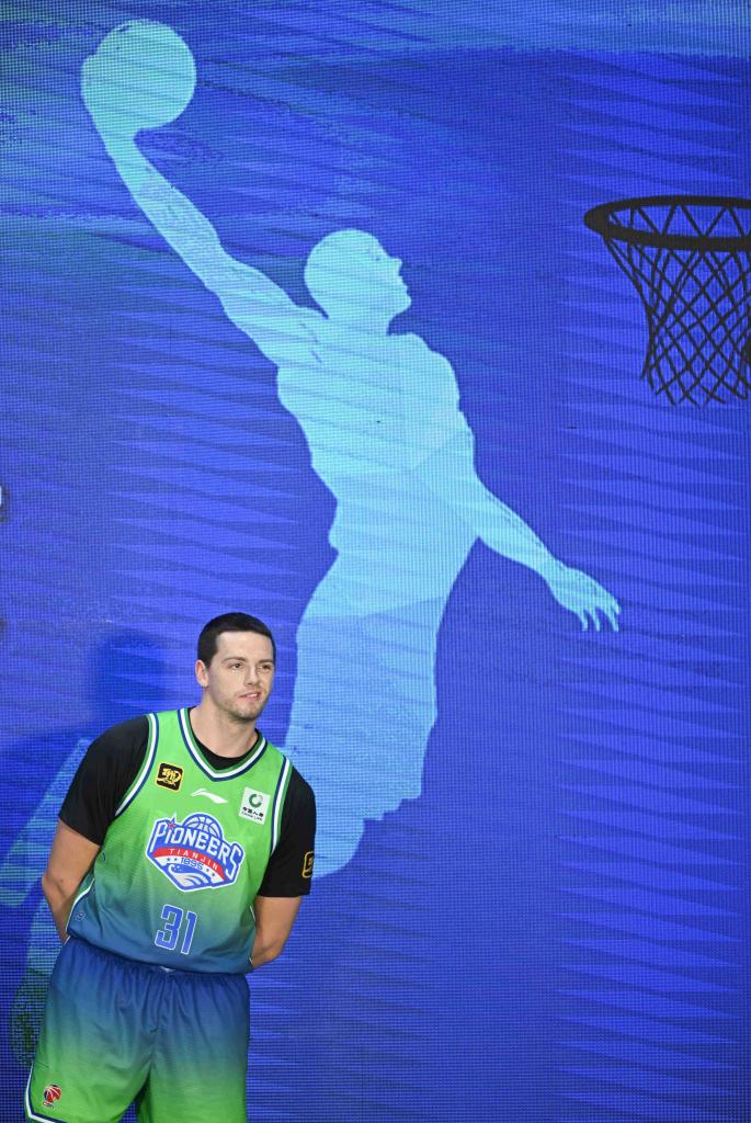 10月9日,天津隊球員大衛(wèi)·詹姆斯在出征儀式上。新華社記者 孫凡越 攝
