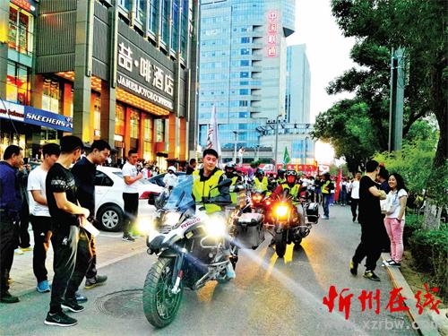 本次“熒光跑”活動由開來欣悅購物廣場主辦,忻州藍天救援隊、秀容騎士摩托騎行隊和愛心公益大聯(lián)盟等眾多志愿者隊伍為該活動全程提供安全保障,大家用“熒光跑”這種獨特的方式表達著對家鄉(xiāng)忻州的熱愛。圖為摩托騎行隊為“熒光跑”開道(魯明強 米成?。?/p>
