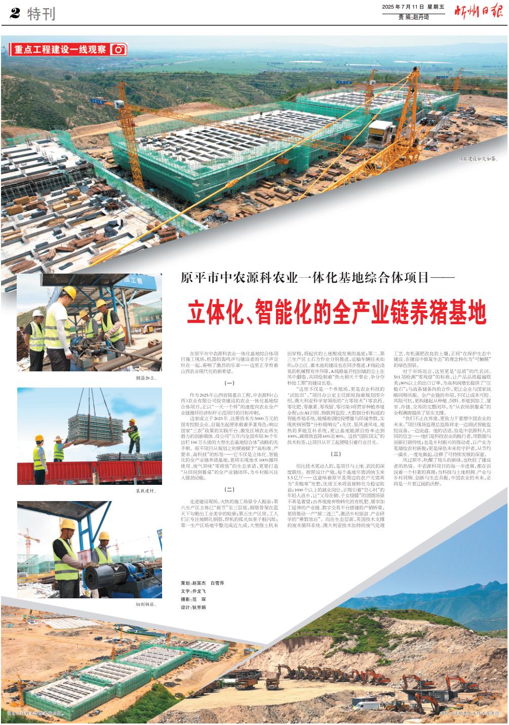 在原平市中農(nóng)源科農(nóng)業(yè)一體化基地綜合體項目施工現(xiàn)場,機器的轟鳴聲與建設(shè)者的號子聲交織在一起,奏響了激昂的樂章——這里正孕育著山西農(nóng)業(yè)現(xiàn)代化的新希望。 (一) 作為2025年山西省級重點工程,中農(nóng)源科(山西)農(nóng)業(yè)有限公司投資建設(shè)的農(nóng)業(yè)一體化基地綜合體項目,正以“一天一個樣”的速度向農(nóng)業(yè)全產(chǎn)業(yè)鏈循環(huán)經(jīng)濟標桿示范項目的目標沖刺。 這家成立于2023年、注冊資本為5000萬元的國有控股企業(yè),自誕生起便承載著多重角色:響應(yīng)國家“三農(nóng)”政策的實踐平臺、激發(fā)區(qū)域農(nóng)業(yè)再生潛力的創(chuàng)新載體、母公司“五年內(nèi)全國布局30個年出欄100萬頭豬的大型生態(tài)基地綜合體”戰(zhàn)略的先手棋。原平項目從規(guī)劃之初便被賦予“高標準、嚴要求、高科技”的標簽——它不僅是立體化、智能化的全產(chǎn)業(yè)鏈養(yǎng)豬基地,更將實現(xiàn)廢水100%循環(huán)使用、廢氣異味“零排放”的生態(tài)承諾,更要打造“從田間到餐桌”的全產(chǎn)業(yè)鏈閉環(huán),為鄉(xiāng)村振興注入強勁動能。 (二) 走進建設(shè)現(xiàn)場,火熱的施工場景令人振奮:第六生產(chǎn)區(qū)主體已“拔節(jié)”至三層底,鋼筋骨架在藍天下勾勒出工業(yè)美學(xué)的輪廓;第五生產(chǎn)區(qū)里,工人們正專注地綁扎鋼筋,焊機的弧光如星子般閃爍;第一生產(chǎn)區(qū)場地平整完成近九成,大型推土機來回穿梭,將起伏的土地熨成發(fā)展的基底;第二、第三生產(chǎn)區(qū)土石方作業(yè)分別推進,運輸車輛往來如織;辦公區(qū)、蓄水池的建設(shè)也在同步推進,F(xiàn)線砼澆筑的機械臂有序升降,A線路基開挖回填的塵土在風中翻卷,共同繪制著“熱火朝天干事業(yè)、爭分奪秒搶工期”的建設(shè)長卷。 “這里不僅是一個養(yǎng)殖場,更是農(nóng)業(yè)科技的‘試驗田’。”項目辦公室主任郎悅指著規(guī)劃圖介紹,澳大利亞科學(xué)家領(lǐng)銜的“五零技術(shù)”(零農(nóng)藥、零化肥、零激素、零殘留、零污染)將貫穿種植養(yǎng)殖全程;由AI識別、物聯(lián)網(wǎng)監(jiān)控、大數(shù)據(jù)分析構(gòu)成的智能養(yǎng)殖系統(tǒng),能精準調(diào)控投喂量與環(huán)境參數(shù),實現(xiàn)疾病預(yù)警“分秒級響應(yīng)”;光伏、低風速風電、地熱的多能互補系統(tǒng),更讓基地能源自給率達到100%,碳排放直降60%至80%。這些“國際頂尖”的技術(shù)標簽,讓項目從開工起便吸引著行業(yè)目光。 (三) 但比技術(shù)更動人的,是項目與土地、農(nóng)民的深度聯(lián)結(jié)。按照設(shè)計產(chǎn)能,每個基地年需消納玉米5.5億斤——這意味著原平及周邊的農(nóng)戶無需再為“賣糧難”發(fā)愁,優(yōu)質(zhì)玉米將直接轉(zhuǎn)化為穩(wěn)定收益;1000個以上的就業(yè)崗位,正吸引著“空心村”的年輕人返鄉(xiāng),讓“父母在側(cè)、子女繞膝”的團圓場景不再是奢望;由養(yǎng)殖廢棄物轉(zhuǎn)化的有機肥、屠宰加工延伸的產(chǎn)業(yè)鏈、數(shù)字交易平臺搭建的產(chǎn)銷橋梁,更將推動一產(chǎn)“接二連三”,激活鄉(xiāng)村旅游、產(chǎn)業(yè)研學(xué)的“乘數(shù)效應(yīng)”。而在生態(tài)層面,英國技術(shù)支撐的廢水循環(huán)系統(tǒng)、澳大利亞技術(shù)加持的廢氣處理工藝、有機菌肥改良的土壤,正將“在保護生態(tài)中建設(shè)、在建設(shè)中修復(fù)生態(tài)”的理念轉(zhuǎn)化為“可觸摸”的綠色圖景。 對于市場而言,這里更是“品質(zhì)”的代名詞。501項檢測“零殘留”的標準,讓產(chǎn)品品質(zhì)超越歐美;80%以上的出口訂單,為高利潤增長提供了“壓艙石”;與戰(zhàn)備儲備肉的合作,更讓企業(yè)與國家戰(zhàn)略同頻共振。全產(chǎn)業(yè)鏈的布局,不僅讓成本可控、風險可抗,更構(gòu)建起從種植、飼料、養(yǎng)殖到加工、屠宰、冷鏈、交易的完整閉環(huán),為“從農(nóng)場到餐桌”的全程溯源提供了堅實支撐。 “我們不止在養(yǎng)豬,更致力于重塑中國農(nóng)業(yè)的未來?!表椖楷F(xiàn)場監(jiān)理總監(jiān)陳祥龍一邊調(diào)試智能監(jiān)控設(shè)備,一邊說道。他的話語,恰是中農(nóng)源科人共同的信念——他們是科技農(nóng)業(yè)的踐行者,用數(shù)據(jù)與創(chuàng)新打破傳統(tǒng);也是鄉(xiāng)村振興的推動者,以產(chǎn)業(yè)為筆描繪農(nóng)村新貌;更是綠色未來的守護者,從節(jié)約一滴水、一度電做起,詮釋了可持續(xù)發(fā)展的深意。 風過原平,吹醒了枝頭的新綠,也吹旺了建設(shè)者的熱情。中農(nóng)源科項目的每一步進展,都在訴說著一個樸素的真理:當科技與土地相擁、產(chǎn)業(yè)與鄉(xiāng)村同頻、創(chuàng)新與生態(tài)共振,中國農(nóng)業(yè)的未來,必將是一片更遼闊的沃野。 策劃:趙富杰 白雪萍 文字:喬龍飛 攝影:范琛 設(shè)計:狄芳娟 (責任編輯:盧相汀) |