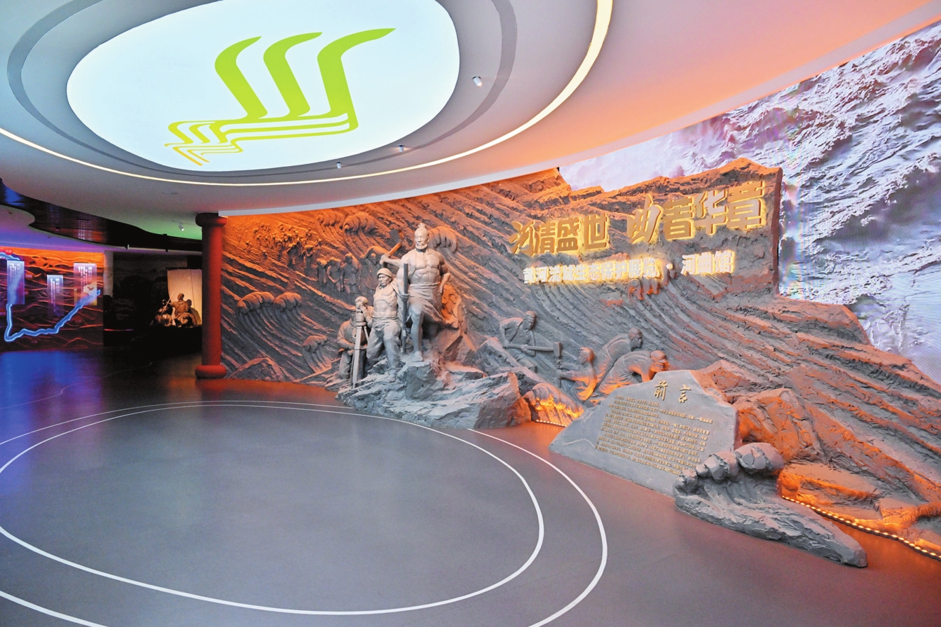 黃河流域生態(tài)保護(hù)展覽·河曲館的弧幕影院。本報(bào)記者馮曉磊攝 沿著黃河蜿蜒的足跡走進(jìn)河曲縣,臨隩公園內(nèi)一座1900平方米的黃河流域生態(tài)保護(hù)展覽·河曲館正以“河清盛世曲著華章”的主題訴說(shuō)著這片土地與母親河的千年情緣,五大篇章的展陳如黃河九曲連環(huán),將70年治黃史詩(shī)徐徐鋪展。 在第一篇章“大河之曲·跡憶沉浮”展區(qū),一組“走西口”雕塑群讓人駐足——衣衫襤褸的先民們肩扛行囊跋涉在黃土坡上,凝固的姿態(tài)里藏著明清時(shí)期的苦難記憶。轉(zhuǎn)角處,解放初期的殘破土地照片與當(dāng)代郁郁蔥蔥的河曲全景照片形成震撼對(duì)比,無(wú)聲訴說(shuō)著“無(wú)山不綠,有水皆清”的治理理念如何照進(jìn)現(xiàn)實(shí)。 “新中國(guó)成立后,河曲人用70年改寫了這部苦難史?!彪S著講解員王昭怡的引導(dǎo),第二篇章“大河之韻·生態(tài)保護(hù)”展區(qū)的光影漸亮?!翱?,這是賀六十九帶領(lǐng)村民造林護(hù)岸的場(chǎng)景復(fù)原。”順著講解員的手勢(shì),50年代勞模賀六十九的雕像在光影中栩栩如生,他手中的鐵鍬與背后萬(wàn)畝林海的微縮模型定格成一個(gè)永恒畫面?!吧霸炝?、死后看樹(shù)”的苗二滿紅銅像前,幻影成像技術(shù)正演繹他發(fā)明的“沙棗樹(shù)抗旱栽培法”,60年代“以糧為綱,治山治水”的標(biāo)語(yǔ)墻記錄著那個(gè)年代的奮斗激情。最引人注目的是王海元帶領(lǐng)280名勞力“首戰(zhàn)掏泥溝”的群雕:刺骨寒風(fēng)中,共產(chǎn)黨員們用帶血的雙手在流沙中筑壩,雕塑底座上印有“青山綠水一盆花,光棍寡婦安下了家”的民謠,道出了治沙人用苦累換來(lái)的幸福。 轉(zhuǎn)過(guò)“治沙成果”弧幕屏,第三篇章“大河之美·生態(tài)經(jīng)濟(jì)”展區(qū)的科技感撲面而來(lái)。“河曲之眼”異形LED矩陣上,智能手環(huán)互動(dòng)裝置正演示著這座煤炭大縣的綠色蛻變?!吧嫌苋旱V成為全市第一個(gè)全礦井達(dá)到中級(jí)標(biāo)準(zhǔn)的智能化生產(chǎn)礦井。”工作人員操作著全息沙盤,磷酸鐵鋰材料生產(chǎn)線、礦山機(jī)械服務(wù)基地的影像在LED矩陣上流轉(zhuǎn)。轉(zhuǎn)身遇見(jiàn)由紅蔥、糜子等農(nóng)產(chǎn)品拼貼而成的8米長(zhǎng)卷《鳥(niǎo)瞰河曲》,54萬(wàn)畝耕地與“兩干十支,十河六庫(kù)”水網(wǎng)工程的模型,詮釋著“雜糧之都”如何將生態(tài)優(yōu)勢(shì)轉(zhuǎn)化為產(chǎn)業(yè)優(yōu)勢(shì)。 “因河而生的不僅是產(chǎn)業(yè),更是文化血脈。”步入第四篇章“大河之魂·黃河文化”展區(qū),明代長(zhǎng)城磚與《河曲縣志》古籍并置陳列,講解員輕聲介紹說(shuō):“這里是黃河與長(zhǎng)城‘雙龍并行’之地,楊家將練兵的石鎖至今留有刀痕?!倍虾鋈伙h來(lái)悠揚(yáng)的山曲,古戲樓造型的舞臺(tái)上,《走西口》選段正精彩上演,臺(tái)下的互動(dòng)裝置允許觀眾轉(zhuǎn)動(dòng)膠片聆聽(tīng)不同年代的唱腔。臺(tái)下展柜里,明長(zhǎng)城磚與河燈會(huì)彩燈交相輝映,《大禹治水》《娘娘灘傳說(shuō)》的連環(huán)畫引人注目。 在第五篇章“大河之夢(mèng)·生態(tài)和諧”展區(qū)的弧幕影院里,《河清盛世曲著華章》主題影片展現(xiàn)著新時(shí)代圖景:國(guó)家園林縣城的林蔭道上,光伏板與古長(zhǎng)城交相輝映;黃河濕地公園里,黑鸛與白天鵝掠過(guò)水面;整溝治理后的山坡上,民宿集群飄起裊裊炊煙。 走出展館,落日余暉為黃河披上金紗,西口古渡的游客們正用手機(jī)記錄晚霞中的護(hù)岸林。這座濃縮了70年治黃史詩(shī)的展館,恰如黃河岸邊的一座精神燈塔,指引忻州兒女在生態(tài)保護(hù)與高質(zhì)量發(fā)展之路上奮進(jìn)前行。(記者 喬龍飛) (責(zé)任編輯:盧相?。?/span> |