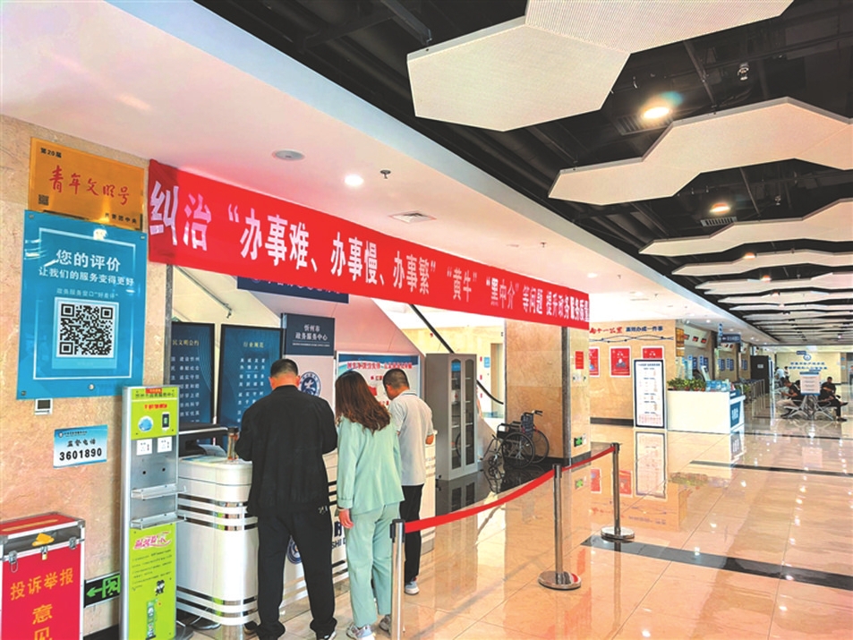 市政務(wù)大廳新時代文明實踐崗嚴格遵守“五不能、五必須”原則,并提供信息咨詢、免費復(fù)印等10項服務(wù)。