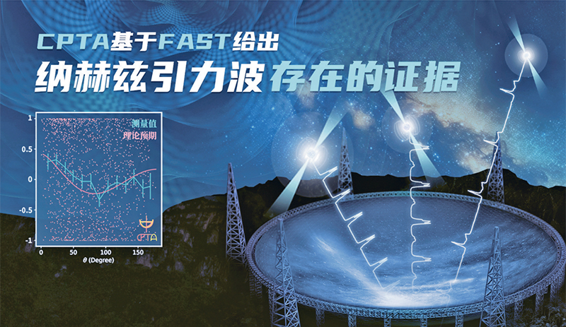 中國脈沖星測時陣列(CPTA)研究團隊,利用被譽為“中國天眼”的500米口徑球面射電望遠鏡(FAST),發(fā)現(xiàn)納赫茲引力波存在的關鍵性證據(jù)。圖為這一發(fā)現(xiàn)的示意圖。 中國科學院供圖