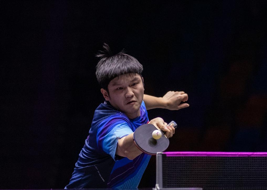 10月29日,樊振東在2023世界乒乓球職業(yè)大聯(lián)盟(WTT)法蘭克福冠軍賽中。新華社記者張帆攝